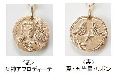 すべての運の基本となる人間関係を良好に導くモチーフ。プライベートにおいて愛情溢れる日々をもたらす、愛と美の「女神アフロディーテ」を表に刻印。裏には富と幸運の神ヘルメスのサンダルにある「翼」と幸運を授ける「五芒星」、縁を結ぶリボンの3つをデザイン。