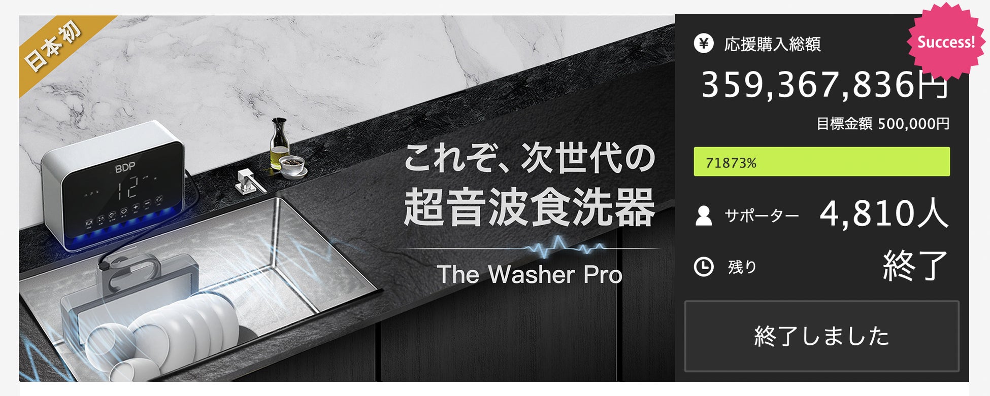 キッチン家電としてクラウドファンディング史上最高額の3.6億円を突破し、テレビ東京やTBS、読売テレビをはじめとするメディア50社以上に取り上げられた、究極に場所を取らない次世代食洗器「The Washer Pro」。BDPは現在、一般販売をスタートしました。