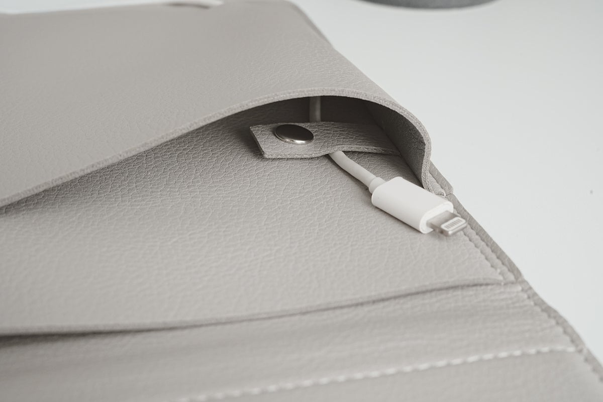 そしてポケット中には、コードを固定しておけるバンドも。コードがポケットの中に潜ってしまうのを防ぎ、デバイスにサッと挿せてストレスフリー。