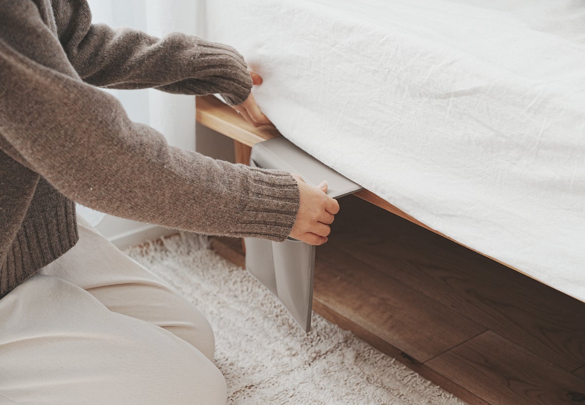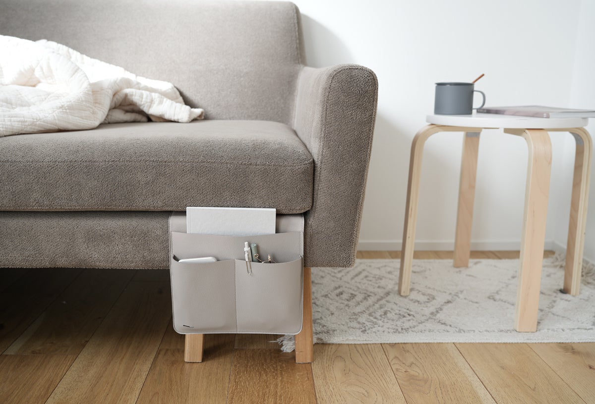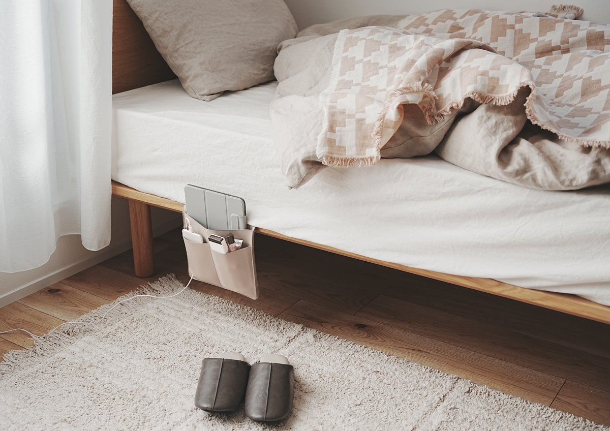 ベッドやソファに差し込むだけ・掛けるだけで、小物整理に便利な収納スペースが誕生!使用頻度の高いものも手に取りやすく、戻しやすいのがポイントで、リモコンやスマホなどの「定位置収納」もこれなら続きそう。