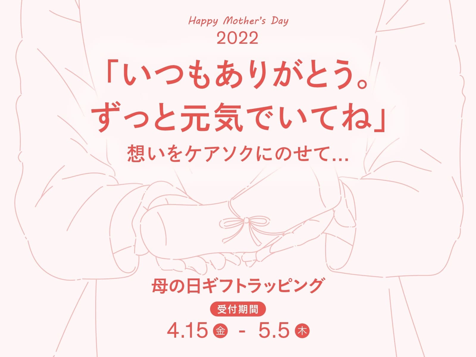 株式会社山忠が展開する、足の専門家と共同研究を重ね科学的根拠に基づく機能設計を行っている靴下”ケアソク“( https://www.caresoku.com/ )は、5月5日(木・祝)まで、母の日ギフトラッピングを提供いたします。