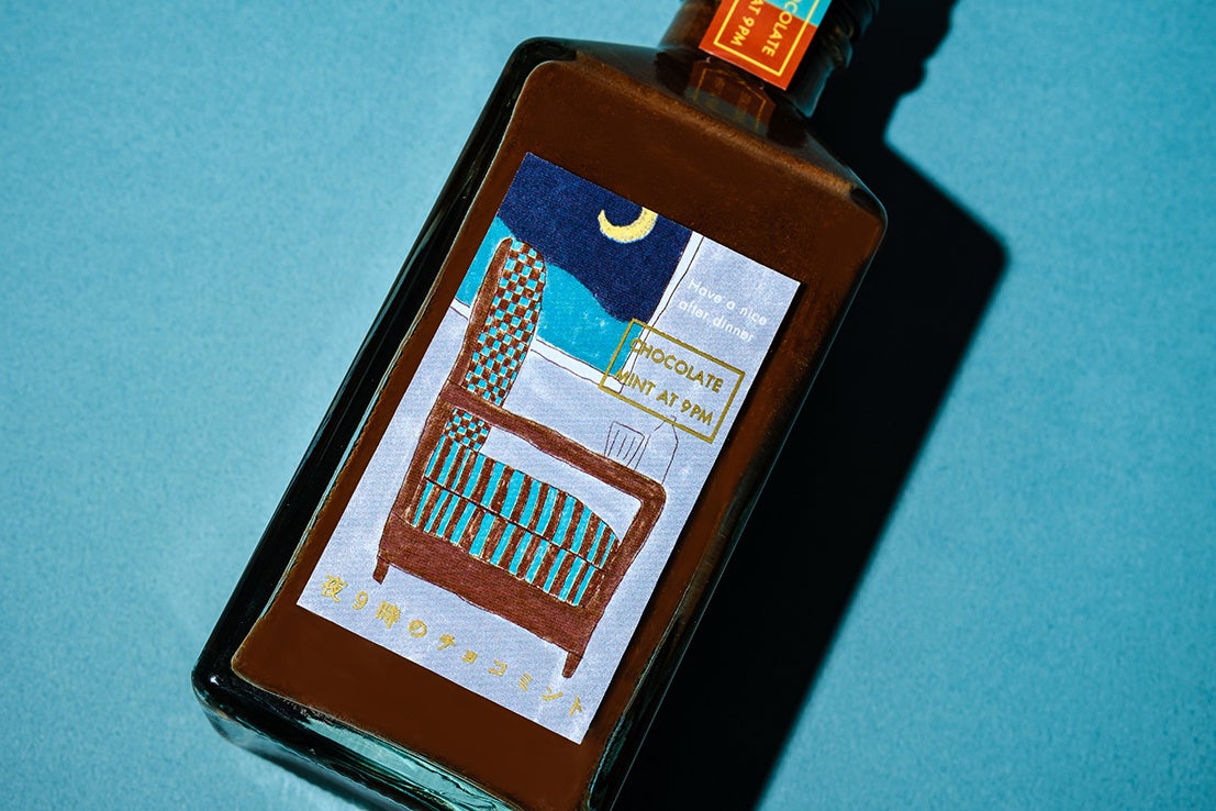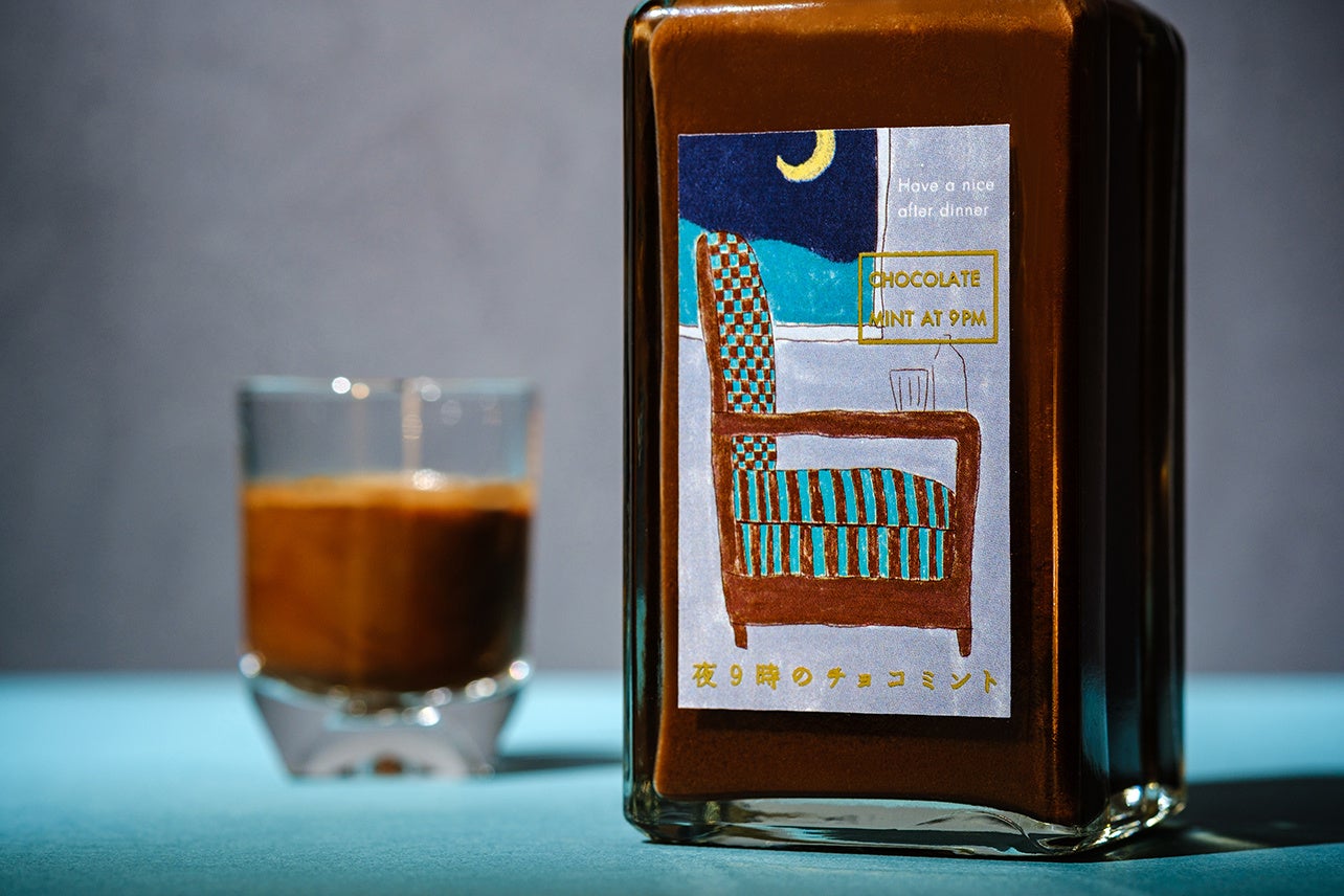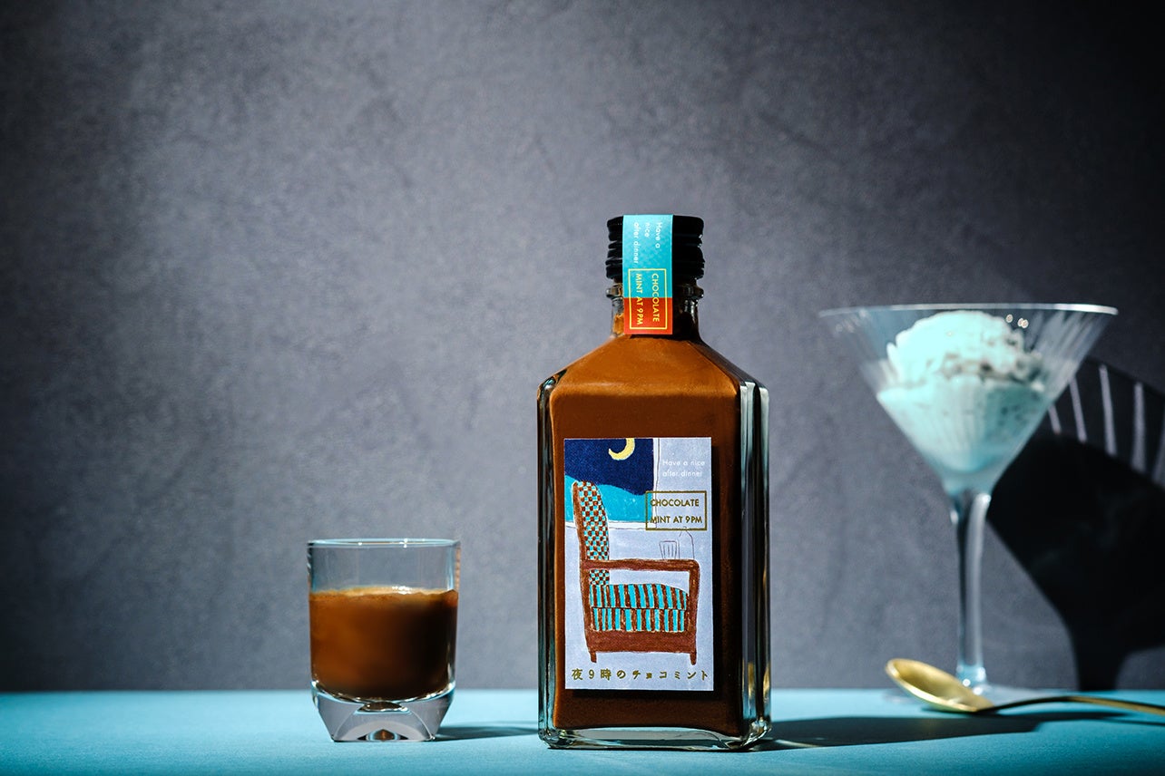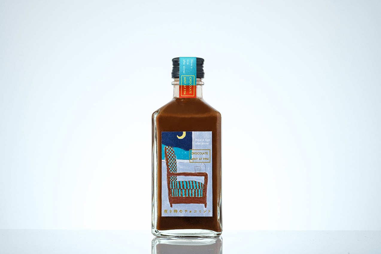 「夜9時のチョコミント」は、贅沢な味わいのチョコミントリキュールです。夕食後のひととき、優雅にお酒やお菓子を楽しむイギリスの文化をイメージして開発されました。チョコのまろやかさとミントの爽やかさを両立した贅沢な味わいが、洗練された夜の大人時間を演出します。