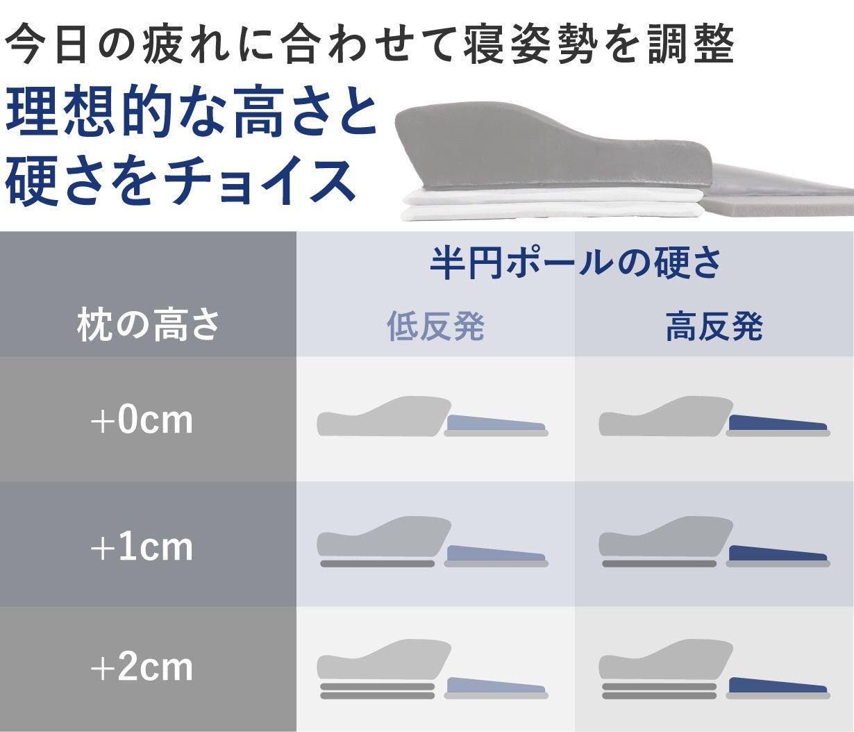 性別や年齢、骨格や筋肉は異なり、その日の緊張やコンディショニングも常に変化します。好みにパットの硬さや枕の高さを選択できます。