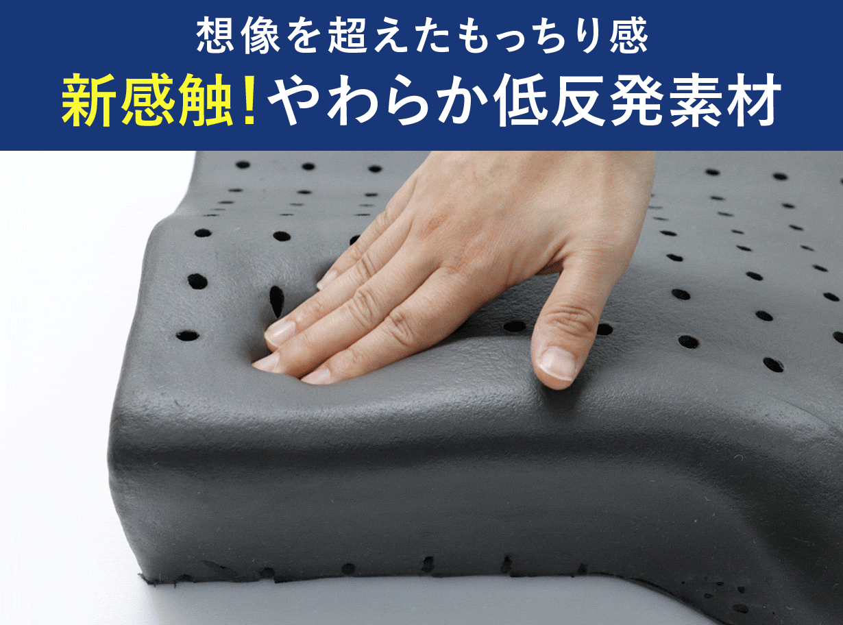 新感触のやわらかな低反発素材が頭の形状や重さに合わせて、程よく沈み込みます(ヘッドホール)