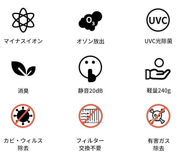 独自開発したマイナスイオン浄化技術を採用し、光触媒技術に頼らず、自動的に5000万PCS/cm³の小粒マイナスイオンを放出し、ホルムアルデヒドや異臭・細菌を効率よく浄化することができます。