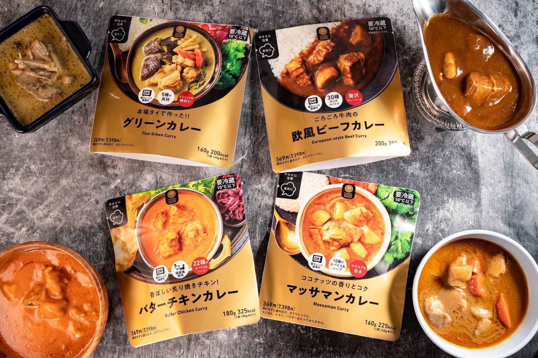 このたび発売するのは、香ばしい炙り焼きチキンが入った「バターチキンカレー」、本場、タイで作った「グリーンカレー」、ごろごろ牛肉の「欧風ビーフカレー」、さらに、世界一おいしい料理と言われる「マッサマンカレー」の、素材や製法にこだわった4種類です。電子レンジで温めるだけで、手間暇かかるこだわりのカレーが、ご家庭で手軽にお楽しみいただけます。