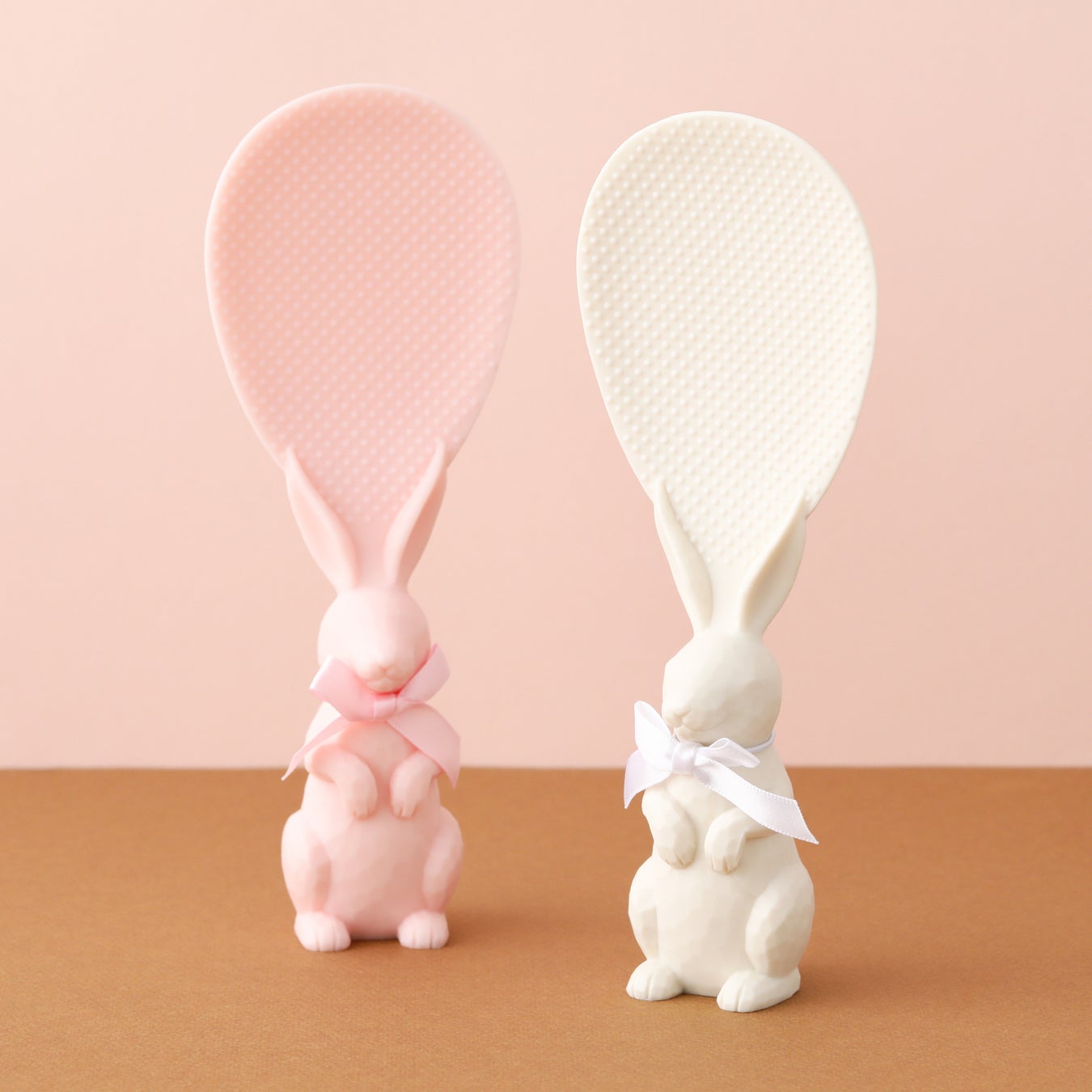 キッチンをかわいくしてくれるだけでなく、便利に使えるうさぎ型の立つしゃもじです。かわいいウサギ型のグリップは持ちやすく、使わないときは自立してくれるので保管スペースも必要ありません。絵本の中から飛び出してきたようなキュートな木彫り風の持ち手がポイントです。しゃもじの素材はポリプロピレンを採用しており、表面にはエンボス加工が施されているので、米粒がくっつき難く、水で流せば簡単に取れるので、後片付けもラクラクです。リボンでおめかししているのでちょっとしたギフトにもおすすめです。2023年、年始のご挨拶ギフトにもおすすめです。