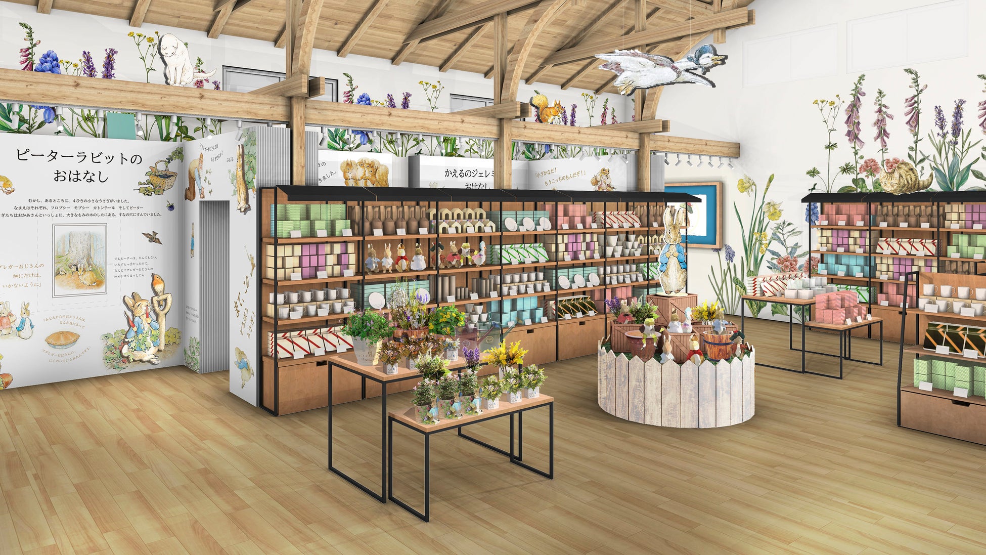 ショップ内にあるギャラリーでは、『ピーターラビットのおはなし』をはじめ、『赤りすナトキンのおはなし』や『かえるのジェレミーのおはなし』といった5つのおはなしをテーマに、絵本の世界に入り込んだかのような体験できます。なお、絵本の翻訳は早川書房より新たに刊行される絵本<ピーターラビット™>シリーズの翻訳を手がける小説家・詩人の川上未映子氏に特別に翻訳をしていただきましたので、ご期待ください。
