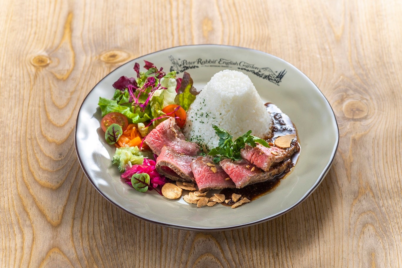 庭園の雰囲気や英国らしさを体感しながらゆったりとしたひと時をお過ごしいただけるカフェでは、絵本に出てくるパイとデイジーのお花をモチーフにした「ブルームパイ」をはじめ、色とりどりの野菜やスモークサーモンを花束のように盛りつけた「マグレガーおじさんのとれたて野菜のブーケサラダ」、ローストビーフに富士山型のライスを盛りつけた「彩りローストビーフプレート」、ドライフラワーを浮かべた「フラワリーラテ」といったオリジナルメニューのほか、サクサク食感のシュークリームやパン、キッシュなどのテイクアウト商品も豊富に取り揃えております。