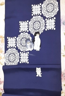 「染色デザイン工芸」染名古屋帯 サラサとねこ 198,000円手描き友禅の猫を、和装にプラス。