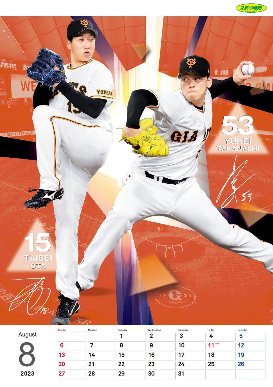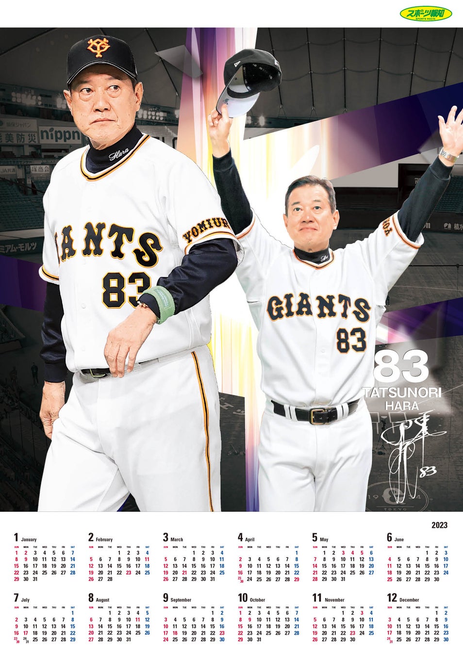 掲載選手(敬称略):表紙・原監督と選手デザイン/1月・丸/2月・菅野/3月・吉川尚/4月・坂本/5月・岡本/6月・小林/7月・戸郷/8月・大勢/9月・大城/10月・高梨/11月・中田/12月・山﨑伊