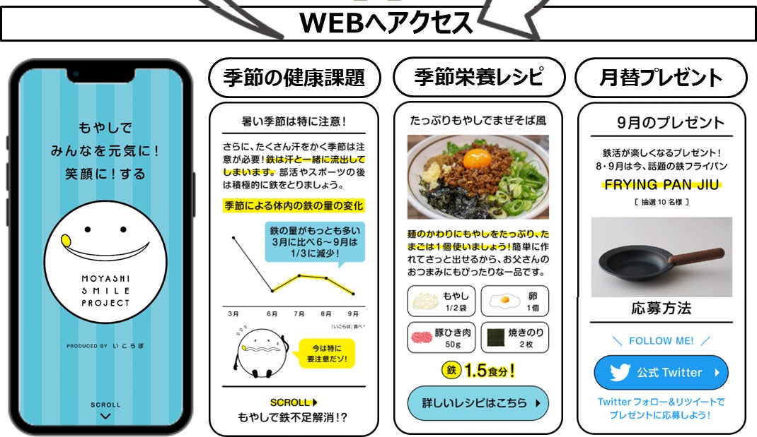 MSPは、全国のもやしメーカーの共同プロジェクトとなり、栄養ブランディングというもやしの価値向上を目指しております。当社は、食品スーパーとも連携し、野菜売場のもやしコーナーでのPOP等インストアプロモーションや、SNSなどのWEBメディアを活用し、季節の健康課題を改善するレシピ提案や、栄養に関わる様々な情報を発信していきます。