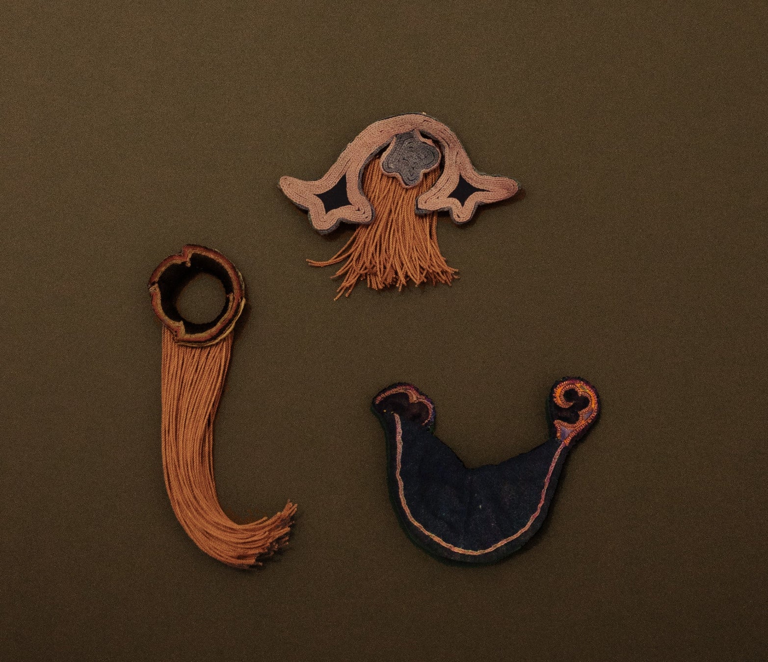 タイ、アフガニスタン、インド、中国、メキシコなどから買い付けた民族衣装や装飾品。人から人へとバトンのように手渡され、作家である高橋さんの元へやってきた、世界中の歴史やさまざまな場面でデコレーションされた布。その小さな欠片たちは、痕跡を残したまま魔法のような彼女の手によって、「バッチ」という新たな命が吹き込まれます。奇跡のような巡り合わせや重なりに想いを馳せながら、自分だけの特別なバッチを見つけてください。