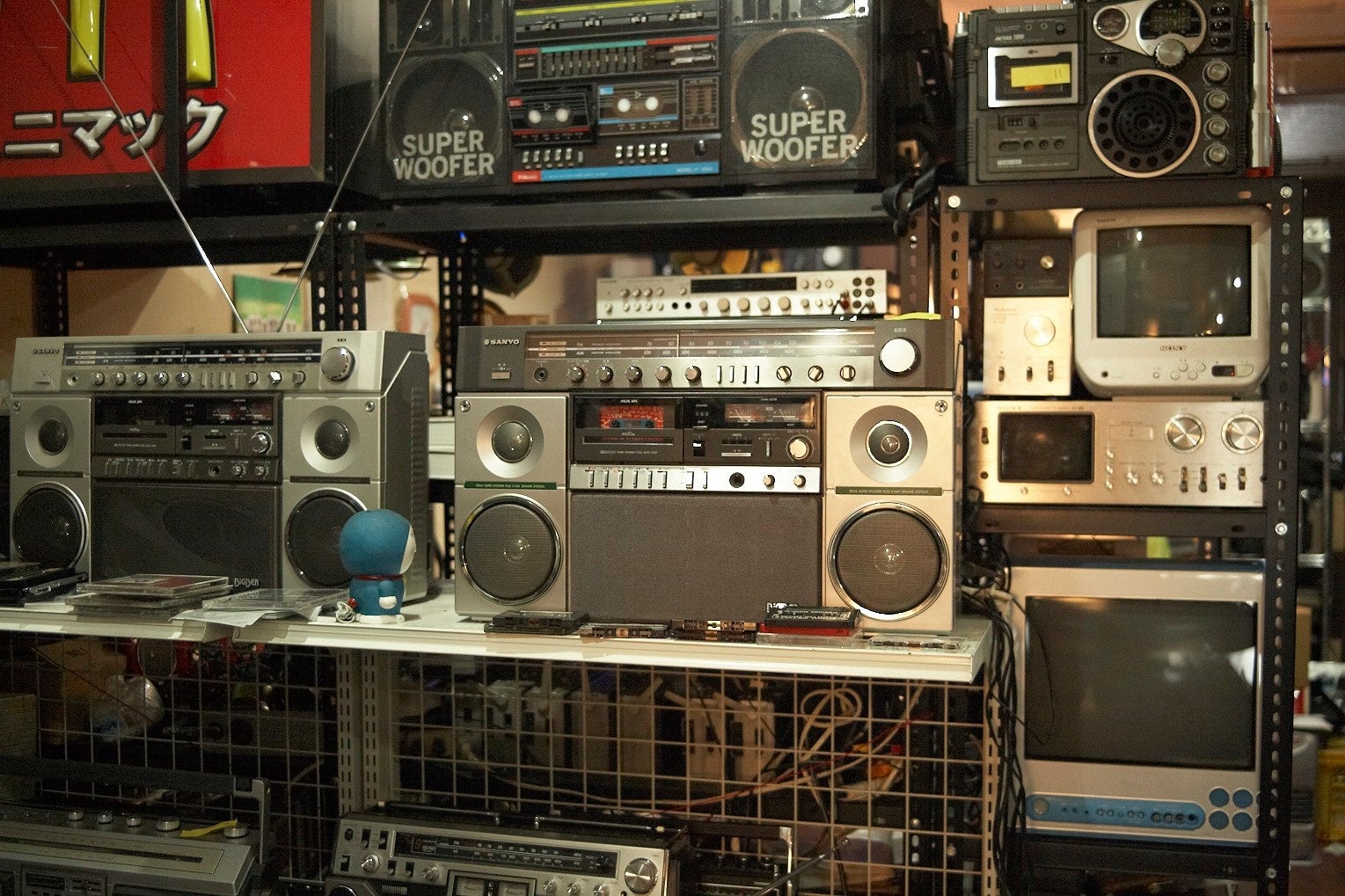 松崎順一氏が、日々日本中を駆け巡り集めた70 年代から80 年代のヴィンテージ家電を自ら整備し現代に蘇らせます。古いものこそ価値創造の原点として、廃棄された家電の発掘作業を行い、主にラジカセをベースとしたアナログ作品を通して、音の魅力や未来の家電のあり方を提案し