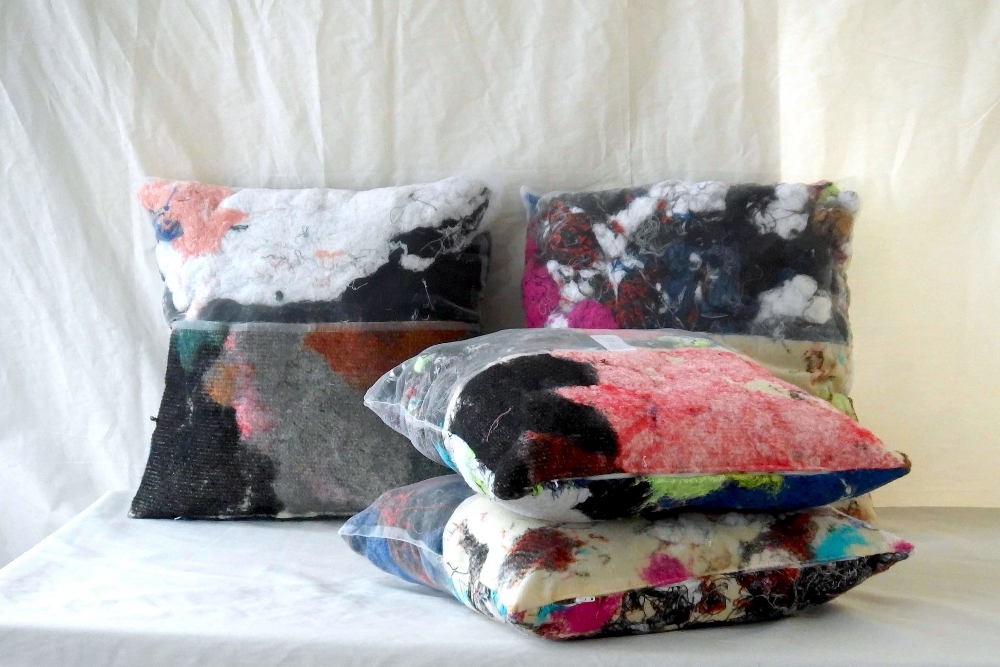 ラテン語で「魂のカタチ」という意味の「ANIMA FORMA」(アニマ・フォルマ)。文字通りアニミズムの考えから生まれました。ANIMA FORMA は、ウール生地の生産過程で廃棄される端材に新しい命を吹き込み、テキスタイルとして蘇生させるアートプロジェクト。
