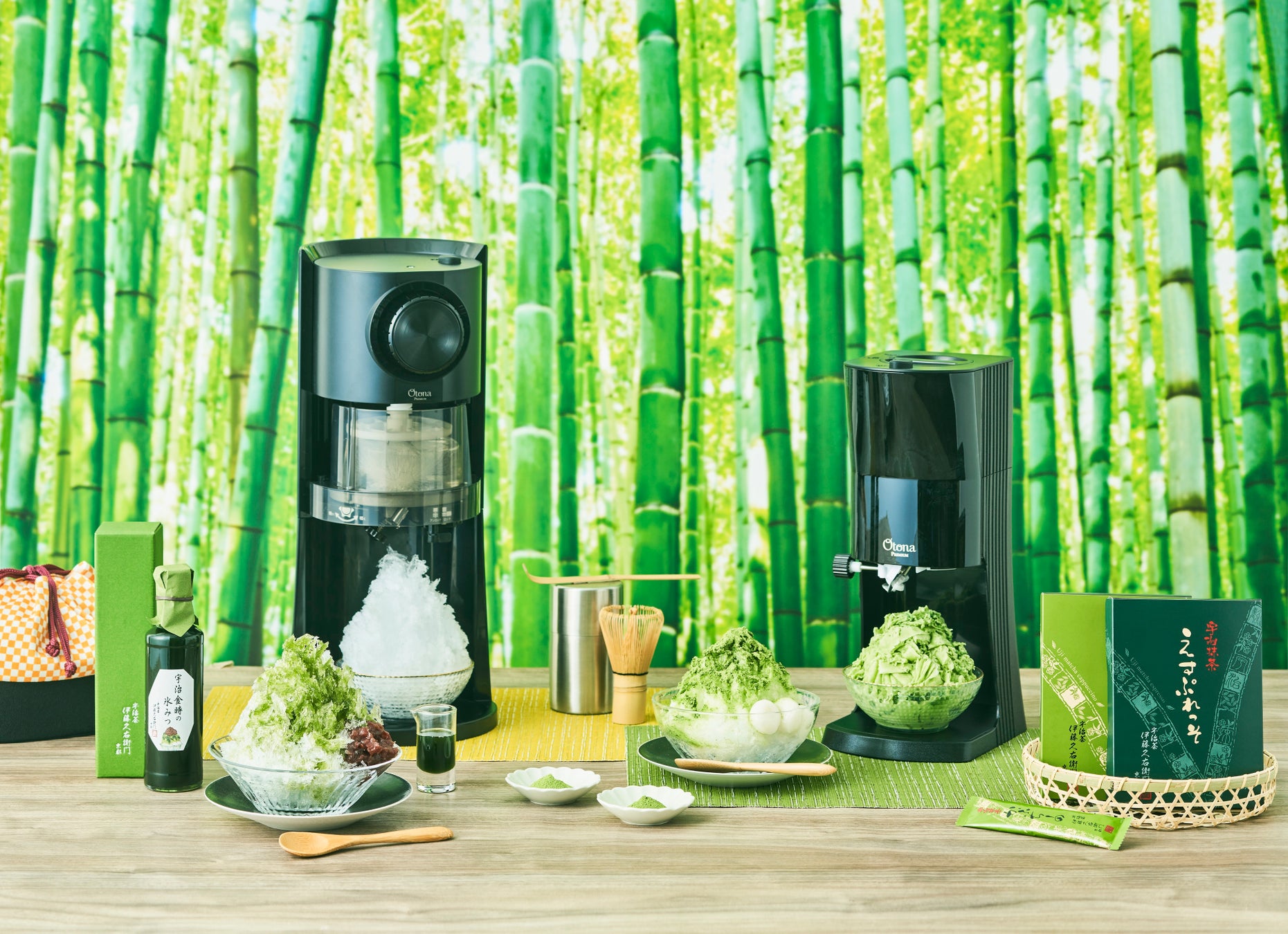 今回のキャンペーンでは、氷を温めて、ふわっとワタのようにとろける氷を削ることができる「電動わた雪かき氷器プレミアム」と、独自の構造で味つきの氷を削ることができる「電動ふわふわとろ雪かき氷器プレミアム」。2種類の高性能な電動かき氷器と、宇治のお茶屋がつくる「宇治金時の氷みつ」「宇治抹茶かぷちーの&えすぷれっそ」を組み合わせることで誕生するプレミアムなオトナのかき氷を提案します。