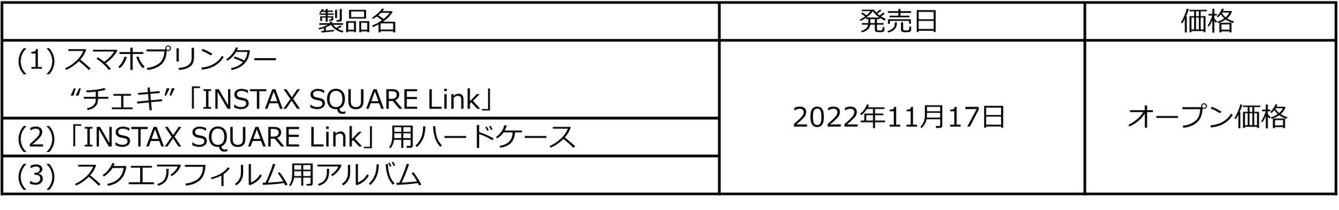富士フイルム株式会社は、スマホの画像をスクエアフォーマットのチェキフィルムに出力できるスマホプリンター“チェキ”「INSTAX SQUARE Link」(以下「SQUARE Link」)を2022年11月17日より発売いたします。「SQUARE Link」は、AR(拡張現実)エフェクトでチェキプリントを彩る機能やメッセージ付きチェキプリントを楽しめる機能を搭載した最新スマホプリンターです。