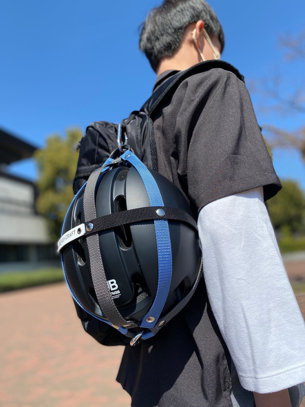 これまでのヘルメットホルダーは、リュックやバックパックに貼り付けるタイプのものが主流でした。