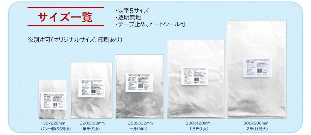 ベーカリーのパンを「香りを保っておいしいまま保存してもらうため」のパン専用鮮度保持袋。