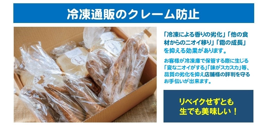 パンの風味保持、冷凍通販、在庫ロスの削減などの課題解決にお役立ちします。
