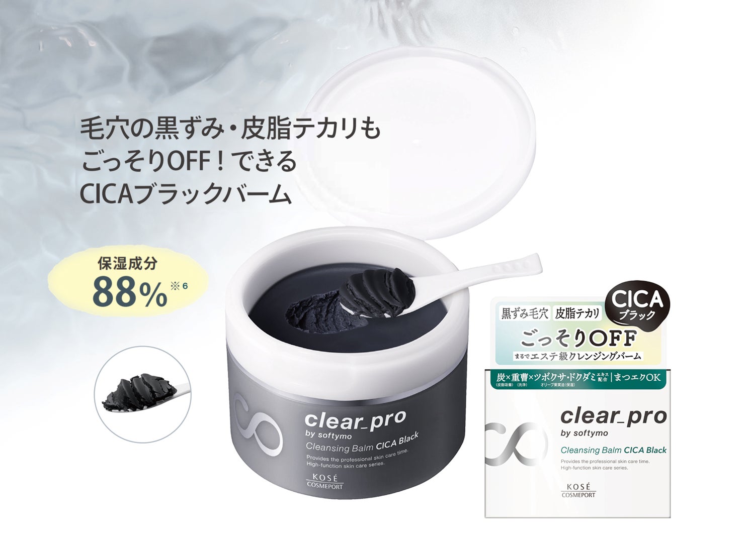 このような背景により、「クリアプロ」は”毛穴ケア効果”を重視する方に向け、頑固な毛穴の黒ずみ・皮脂まで根こそぎ除去し、すっきり陶器のような肌へ導く「クリアプロ クレンジングバーム CICAブラック」を新発売します。※3