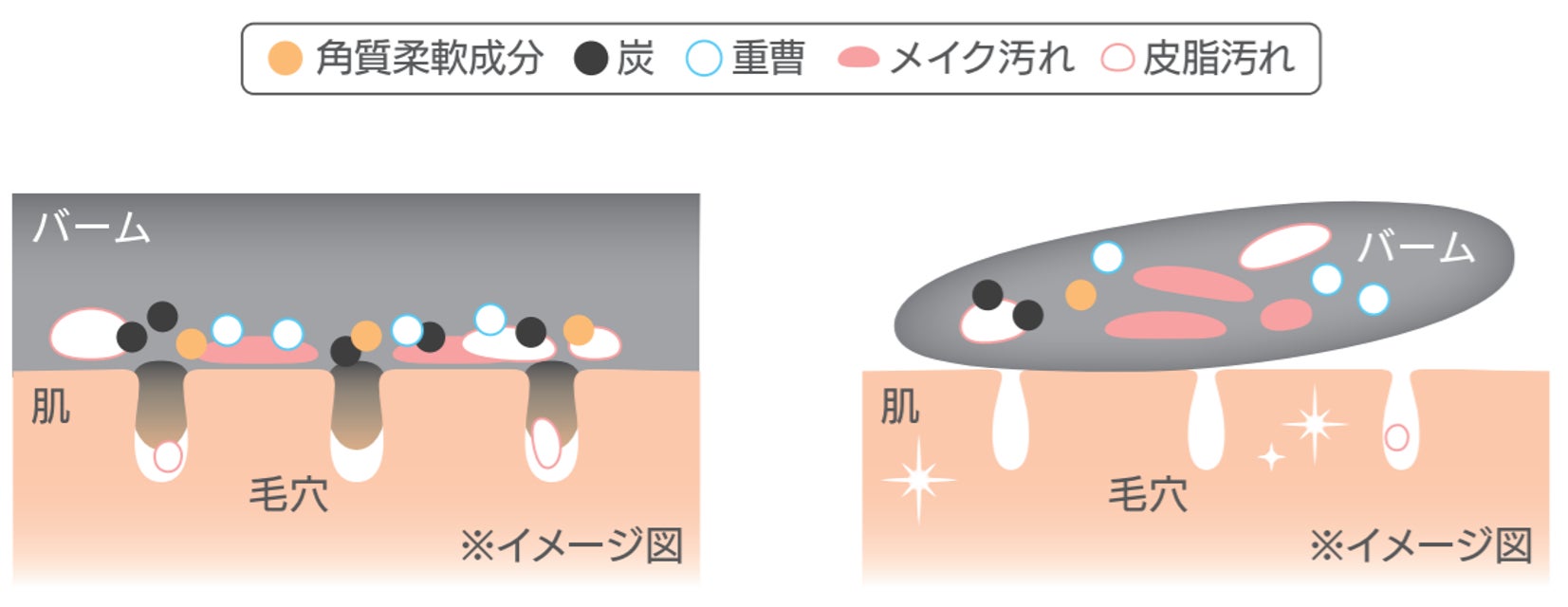 長年の研究によって生まれた「ブラックヘッド※4&皮脂 吸着除去技術」により、角質柔軟成分であるホホバオイルが、角質や皮脂汚れをやわらかくほぐし、皮脂吸着成分である炭により、毛穴汚れや皮脂を吸着。また、重曹※5の洗浄効果で、メイク汚れだけでなく黒ずみ・皮脂まですっきり洗い流します。さらに、ツボクサエキス・ドクダミエキス※6といった厳選保湿成分配合で、毛穴まわりのキメまで整え、引きしまったような肌に洗い上げます。