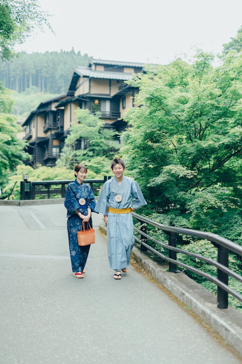 黒川温泉観光旅館協同組合は、黒川温泉観光協会と共同で7月1日~翌年1月31日の期間、浴衣での温泉街の散策と露天風呂、グルメ、お土産がセットになった”黒川ユカタキドリ”が開催中です。黒川ユカタキドリは、黒川温泉へ日帰りやお泊まりのご旅行中に、新しい入湯手形と浴衣のレンタルがセットでお得に楽しめる体験です。新しい入湯手形は、露天風呂入湯だけでなく、飲食やお土産に利用することができます。