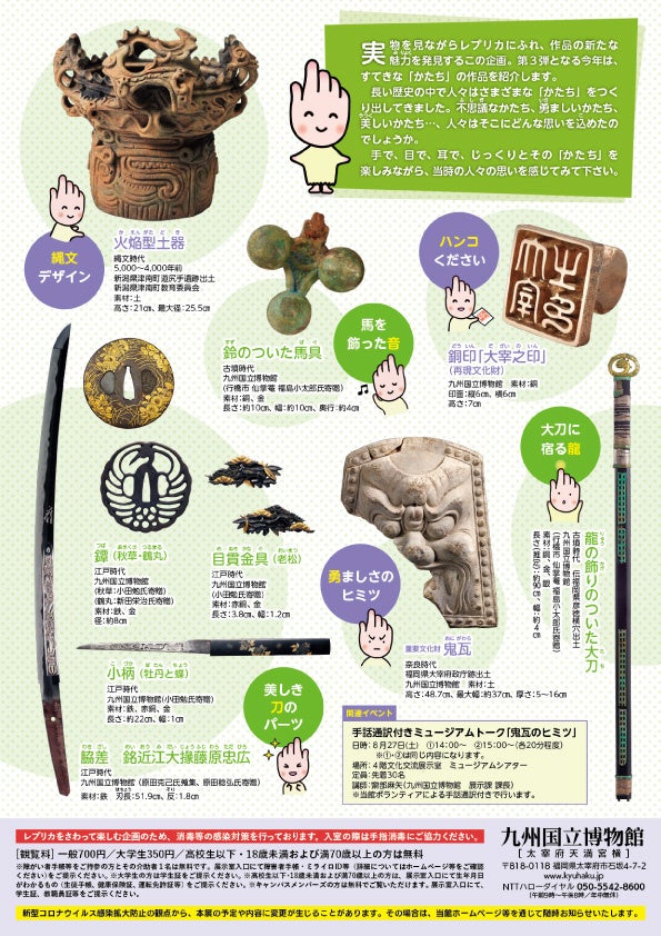 実物を見ながらレプリカにふれ、作品の新たな魅力を発見するこの企画。第3弾となる今年は、すてきな「かたち」の作品を紹介します。さまざな感覚と自由な発想で作品をお楽しみください。