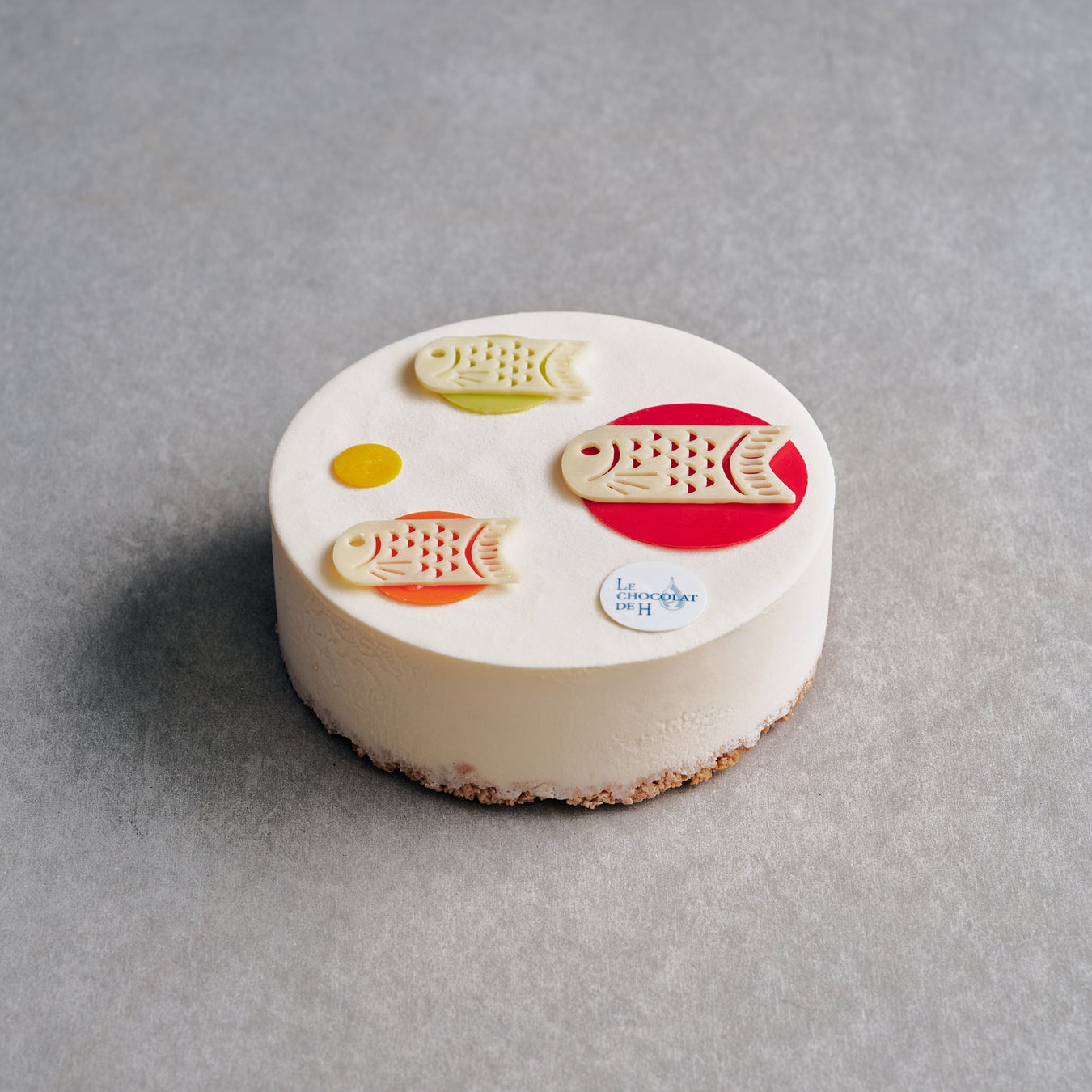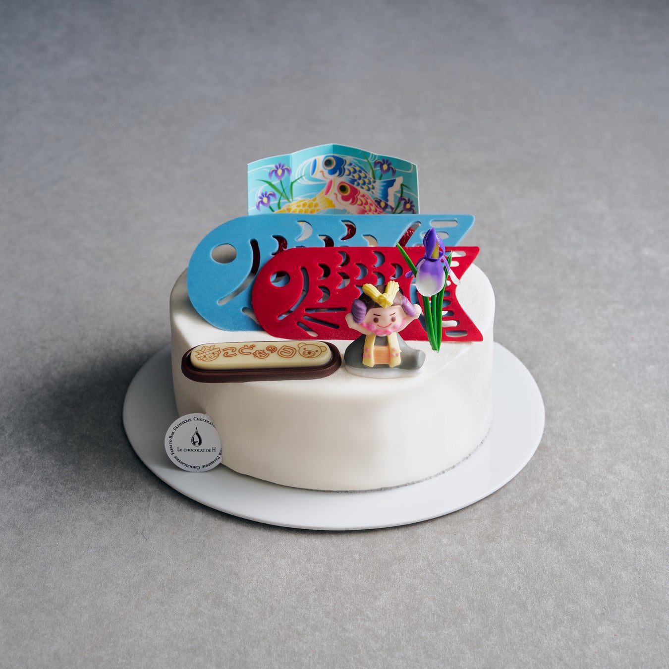 お子様の健やかな成長を願い、こいのぼりモチーフのショコラを飾ったガトー。