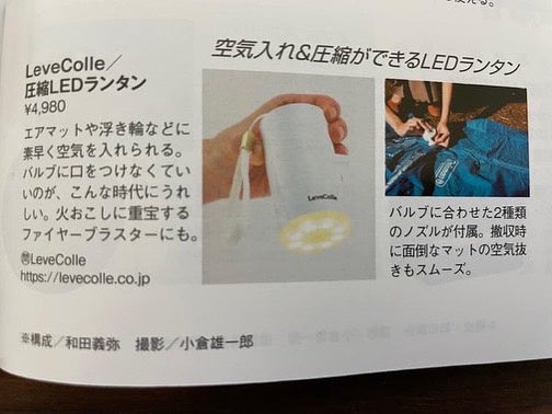 小学館の雑誌BEPALのアウトドア特集「このガジェットがすごい!」でLeveColleの圧縮LEDランタンが掲載されました。