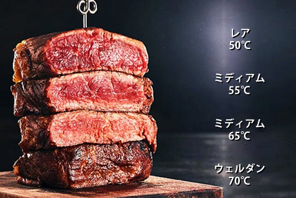 さまざまな調査によりますと、お肉をもっとも美味しくいただける温度は65℃を以下で加熱することです。65℃以上に達すると、タンパク質の熱変性速度が加速し、味気ない肉の塊となり食感が落ちてしまいます。