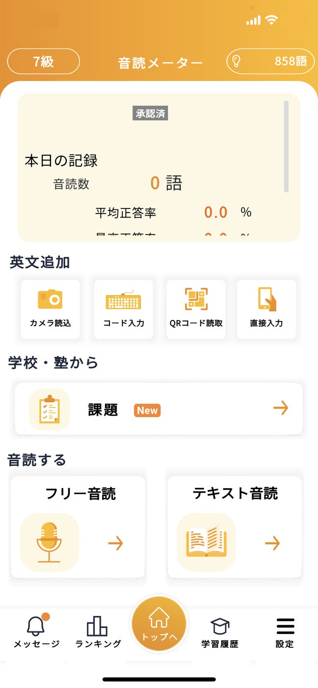 音読メーターは英語の音読量と発音の正確さを記録できる英語学習アプリです。