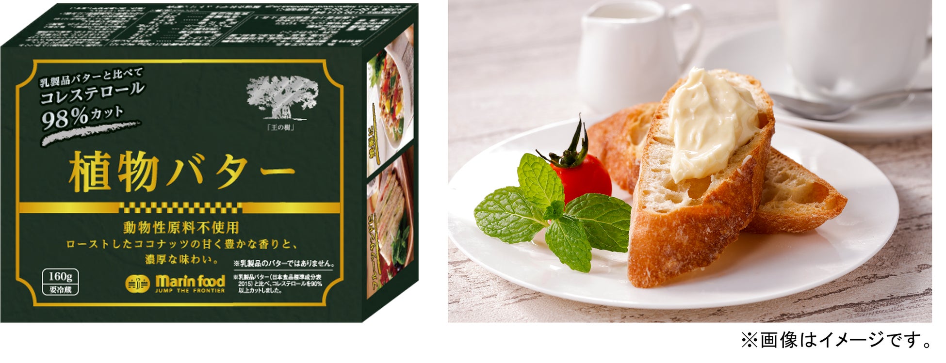 マリンフードから発売する「植物バター 160g」は、動物性原料不使用なのに、乳製品のバターに劣らない濃厚さが特徴です。