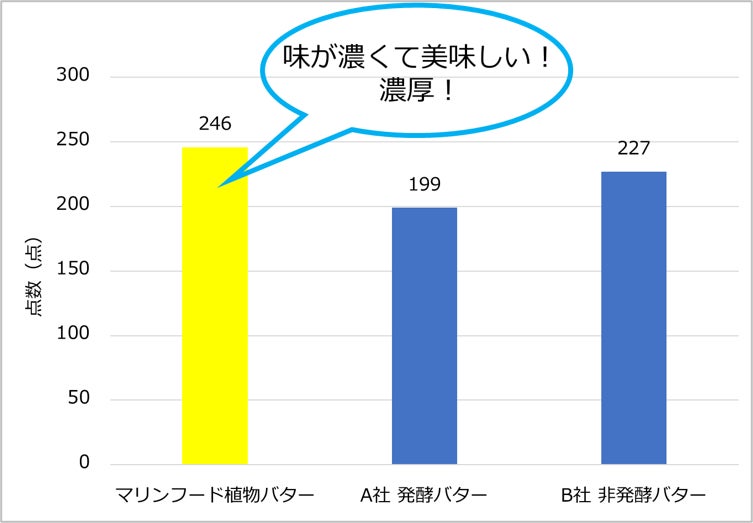 焼いたトーストに塗るだけで濃厚な本物のバターの様な風味や味わいをお楽しみいただけます。弊社で実施した官能調査では、本商品は、他社乳製品バターや他社発酵バターと比較して味が濃くて美味しいという反応が得られました※1。