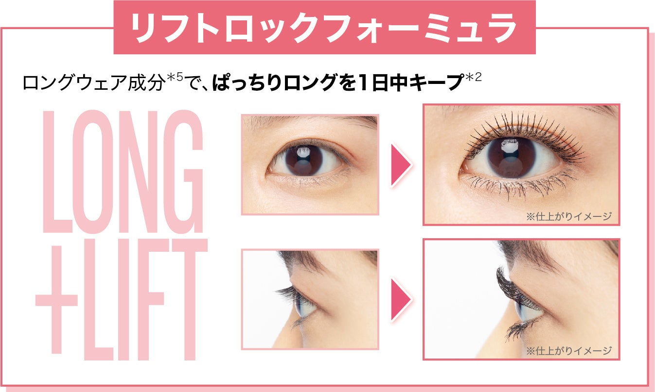 ロングウェア*5成分がまつ毛をロック!一日中自然なリフトをキープ*2。