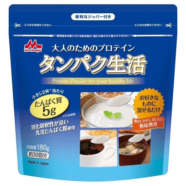 乳で培った技術を活かした製品づくりで100年以上にわたり健康と向き合い、笑顔あふれる豊かな社会づくりのために力を注いできた森永乳業は、健康寿命延伸に貢献するために「タンパク生活」を開発しました。純度の高いたんぱく質粉末であり、ほぼ無味無臭で溶かしやすく、普段の料理や、飲み物にまぜるだけで手軽にたんぱく質を摂取することができる商品です。
