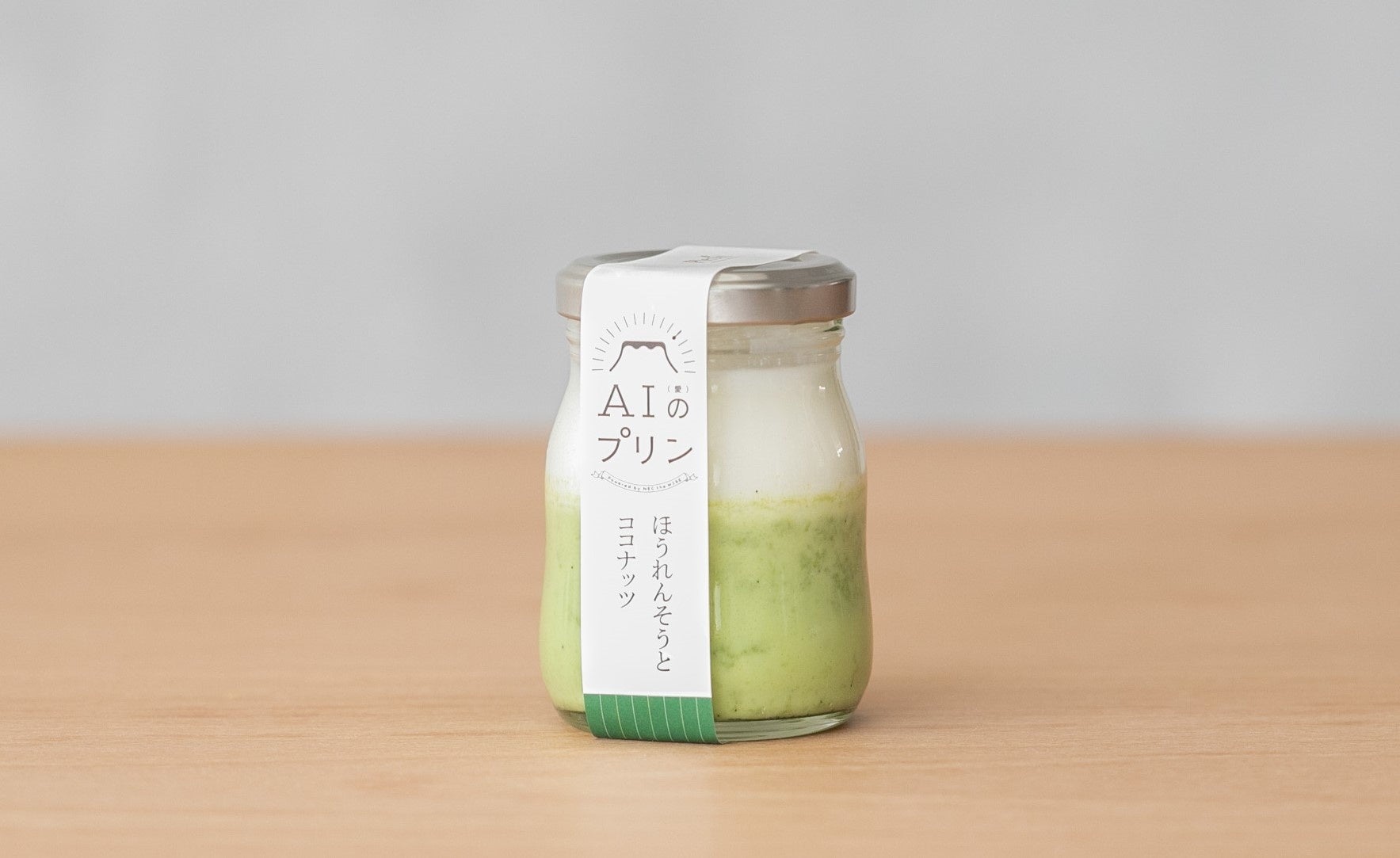 ほうれんそうとココナッツのプリンの上に、ココナッツのブランマンジェを流し込みました。ほうれんそうの味をココナッツの甘みがまろやかにしてくれます。