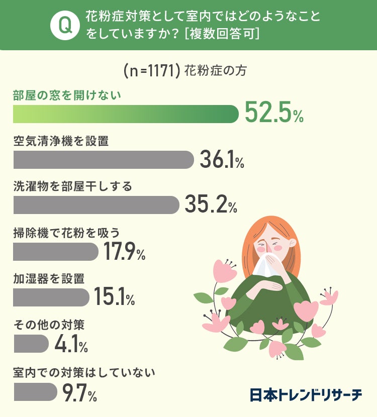 日本トレンドリサーチは、株式会社ハル・インダストリと共同で「花粉症対策」に関するアンケートを実施し、結果をサイト内にて公開したので紹介します。