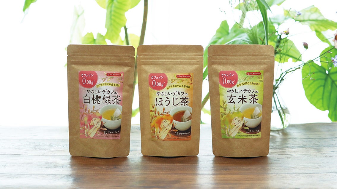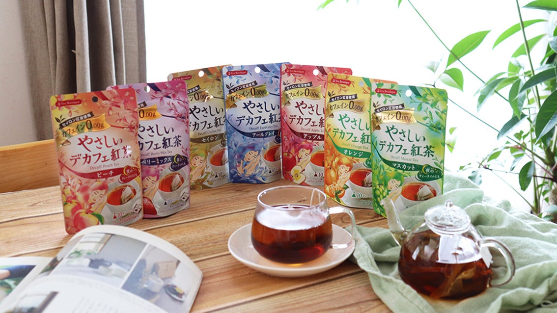 「やさしいデカフェ」シリーズは、紅茶のほか、水出し紅茶、和のお茶、中国茶などバラエティ豊かなラインナップを取り揃えています。カフェインを控えたい方のお好みや気分、シーンに合わせて楽しくお選びいただけます。