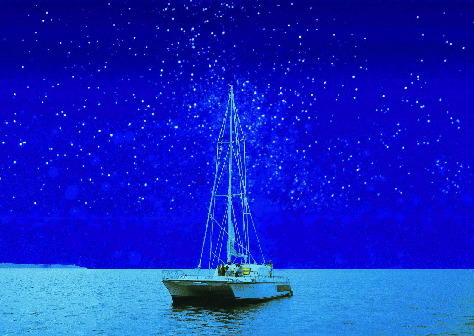 ホテル所有のカタマランヨット「マハイナ号」で海上の星空観賞ポイントまでクルーズし、満天の星を仰ぎながら星のソムリエの解説に耳を傾けるナイトクルーズです。鑑賞の後はプロカメラマンによる星空をバックにした記念撮影を行い、旅の思い出にお持ち帰りいただけます。
