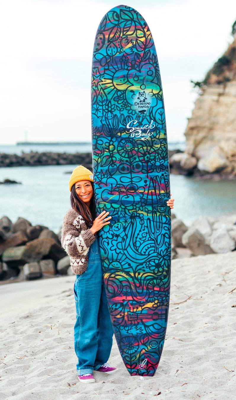 太陽や海、空、風からエネルギーを受け、波乗りをしながら「楽しい」という感情から生まれるパワーを原動力に個性的な作品を制作するアーティストの「かおかおパンダ」氏を招き、彼女の作品を展示即売するほか、本人と一緒に大きなキャンバスに絵を描くワークショップを開催いたします。