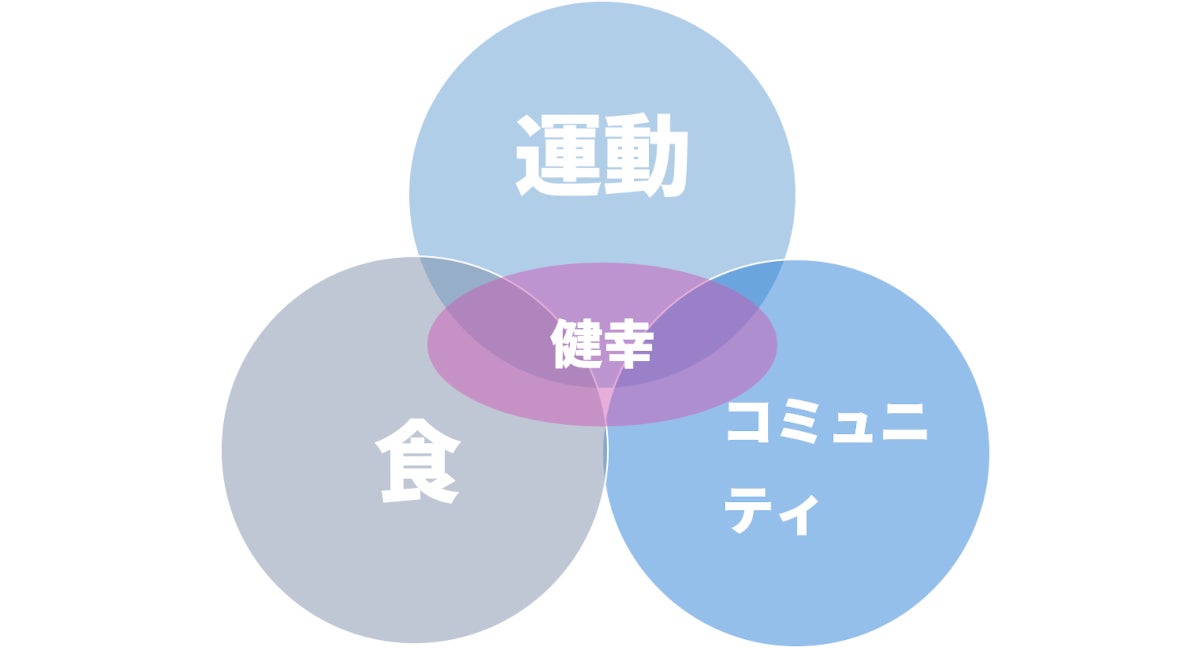 (1)運動(2)食(3)コミュニティ形成の3つを軸として、個⼈の健康の⾃⽴を図り、健康の自立を達成した個人が集まることで「健幸な社会の実現」に繋げます。ラジーンのコミュニティを通じて、無償の愛・心身ともに安らぐ家族のような空間・環境・社会(=ラジオ体操家族)を創出してまいります。