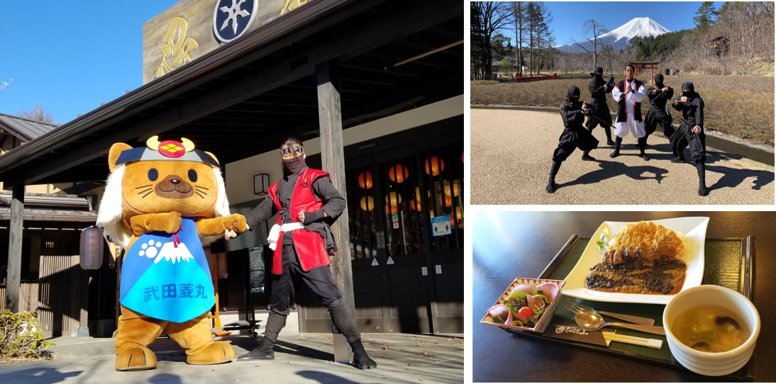 スタッフに合言葉を伝えていただいた方にお貸出しする忍者衣装を身に着けて参加すれば、より一層忍者気分に浸ってお楽しみいただけます。また、食事処「雪月風花」には、甲斐の虎『武田信玄公』をイメージしたボリューム満点の「甲斐の虎 忍者カツカレー」も2日間限定で登場いたします。