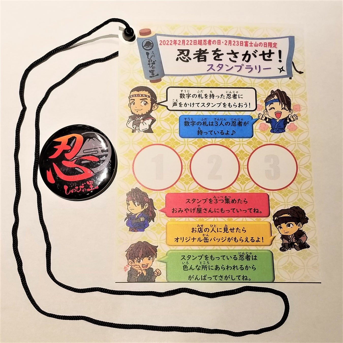 3人の忍者からスタンプを集めたら、受付でオリジナル缶バッジがもらえます。