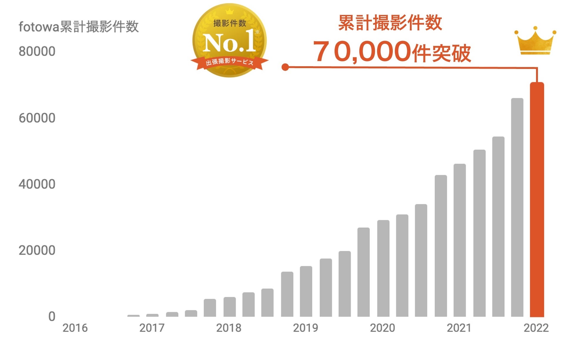 fotowaは、昨年6月に累計撮影件数5万件を突破し、それからわずか9ヶ月で約2万件増加いたしました。