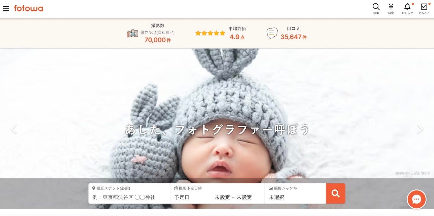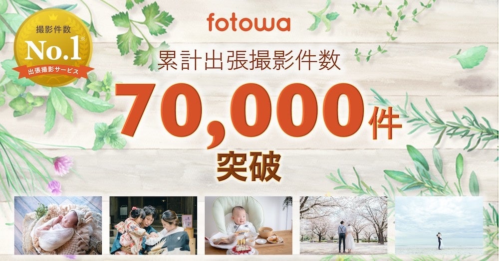 ピクスタ株式会社が運営する、家族・子ども向け出張撮影プラットフォーム「fotowa(フォトワ)」は、2022年3月末時点で、累計撮影件数が70,000件を突破し、2年連続で業界No.1(※1)の撮影件数となったことをお知らせいたします。