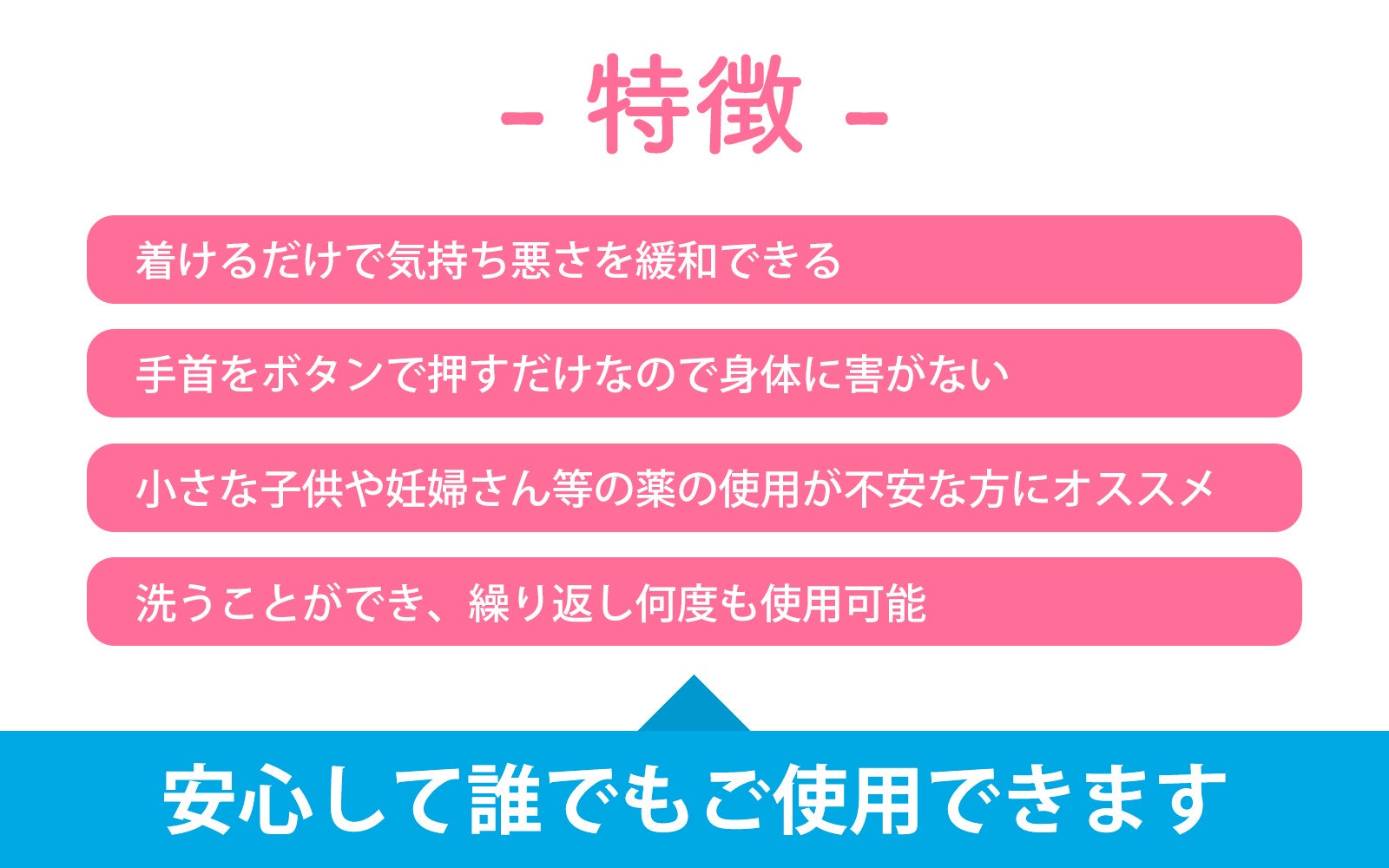 ◇『スッキリバンド®』:「吐き気」緩和用指圧リストバンドの特長