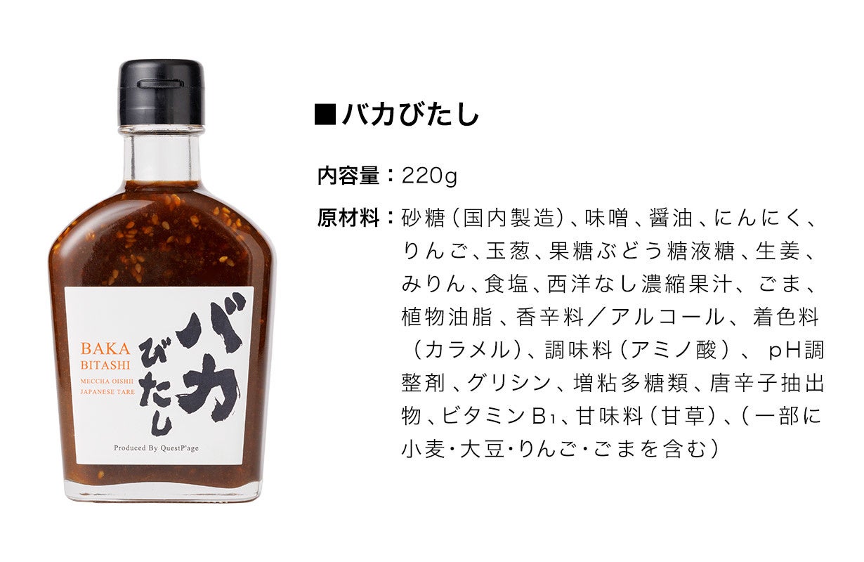 株式会社QuestP’ageは、キャンプ芸人としても活躍中のお笑いコンビ 「バイきんぐ」の西村 瑞樹さんの監修の下、共同開発した焼き肉のタレ『バカびたし』をアタラシイものや体験の応援購入サービス「Makuake」にて発売中です。
