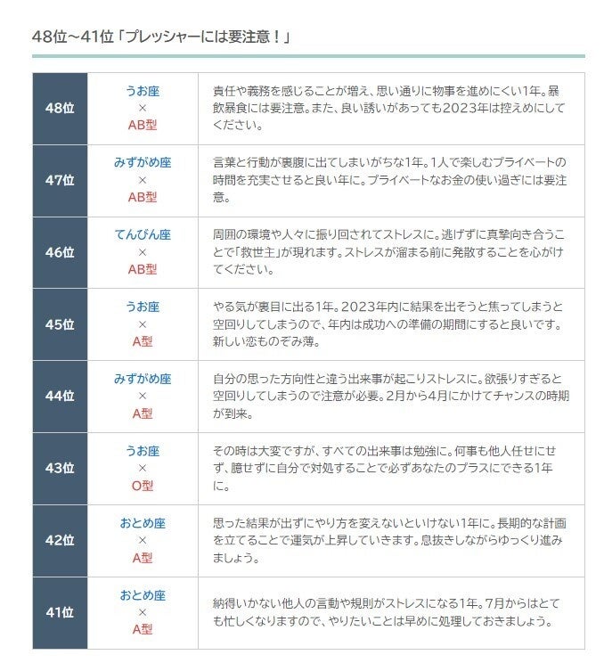 『2023年最強運ランキング』を発表! 星座と血液型を掛け合わせて1位~48位まででランキング付け。「あなたの順位は……何位?」2023年がどんな1年になるのか、より良い1年にするためにもチェックしてみてくださいね!