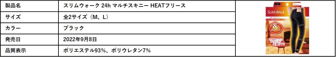 ピップ株式会社は、着圧レッグウェアブランド「スリムウォーク」から、1枚あればいつでも好きなときにあったか美脚ケアができる「スリムウォーク 24h マルチスキニー HEATフリース」を、パッケージリニューアルをして全国のドラッグストア・量販店などで数量限定で発売しています。